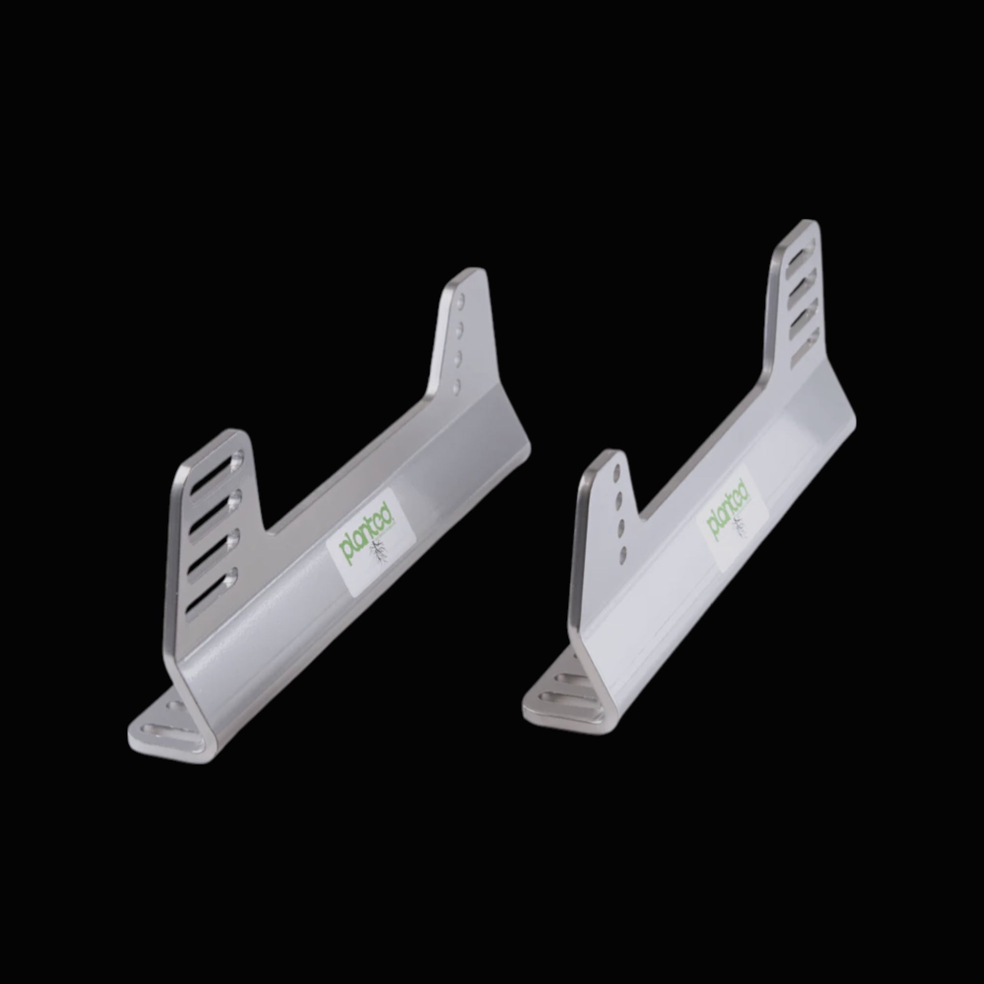 The Planted Aluminum Offset Universal Side Mount is made from 1/4th inch thick aluminum which complies with FIA's required thickness, weighs approximately 3.5 lbs, and is powder coated. These will fit Side Mount Seats offered by most seat manufacturers. The wider slots allow the Side Mounts to be compatible with most other seat manufacturers as well but we have not test fitted them all. The Side Mounts are made to bolt directly to sliders but have multiple slots for adjustability when direct mounting (eliminating sliders).